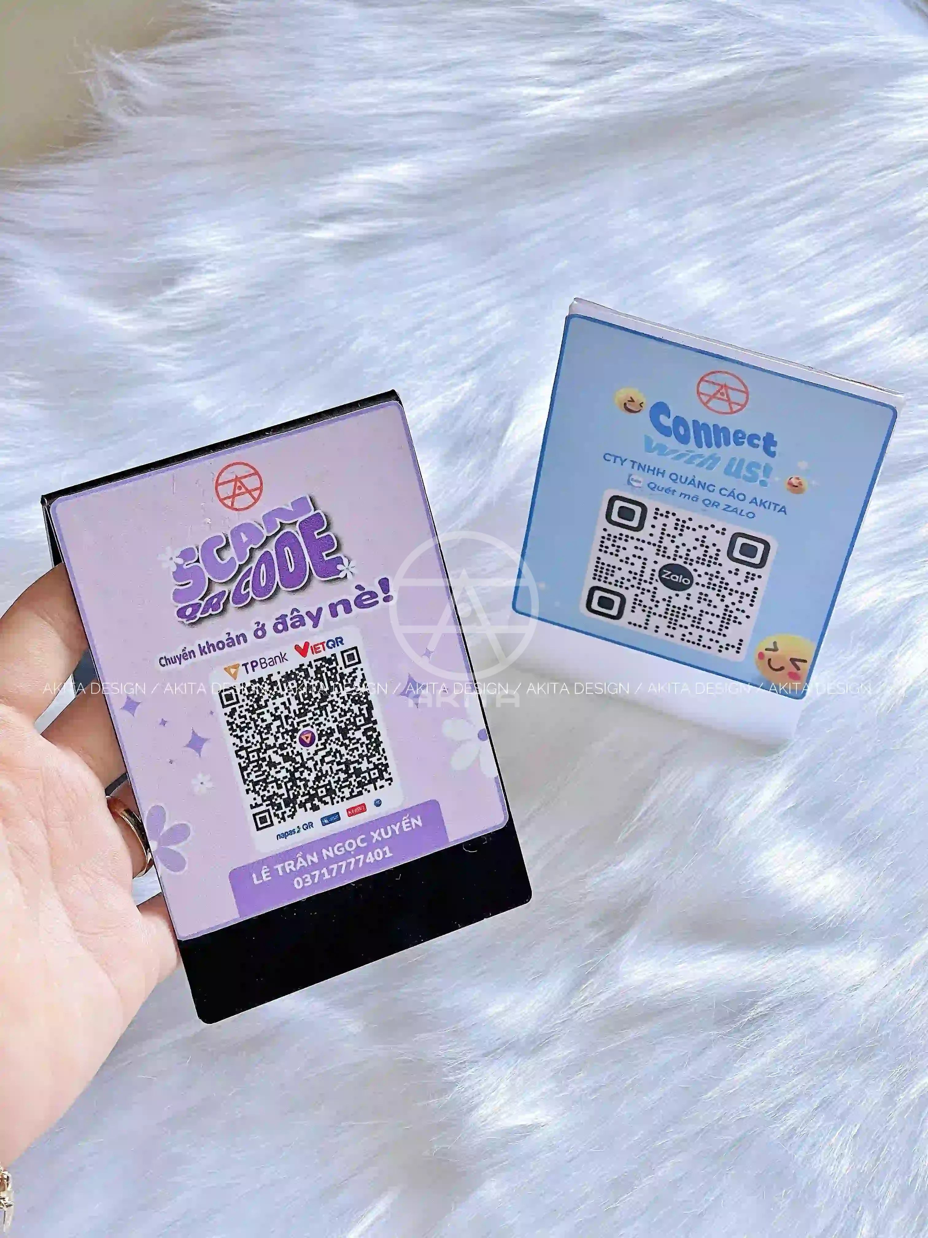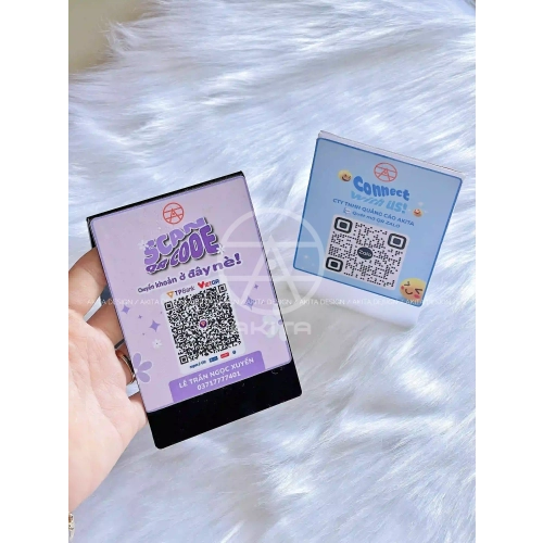 QR code (thẻ/đế acrylic, dán bàn, dán máy POS)